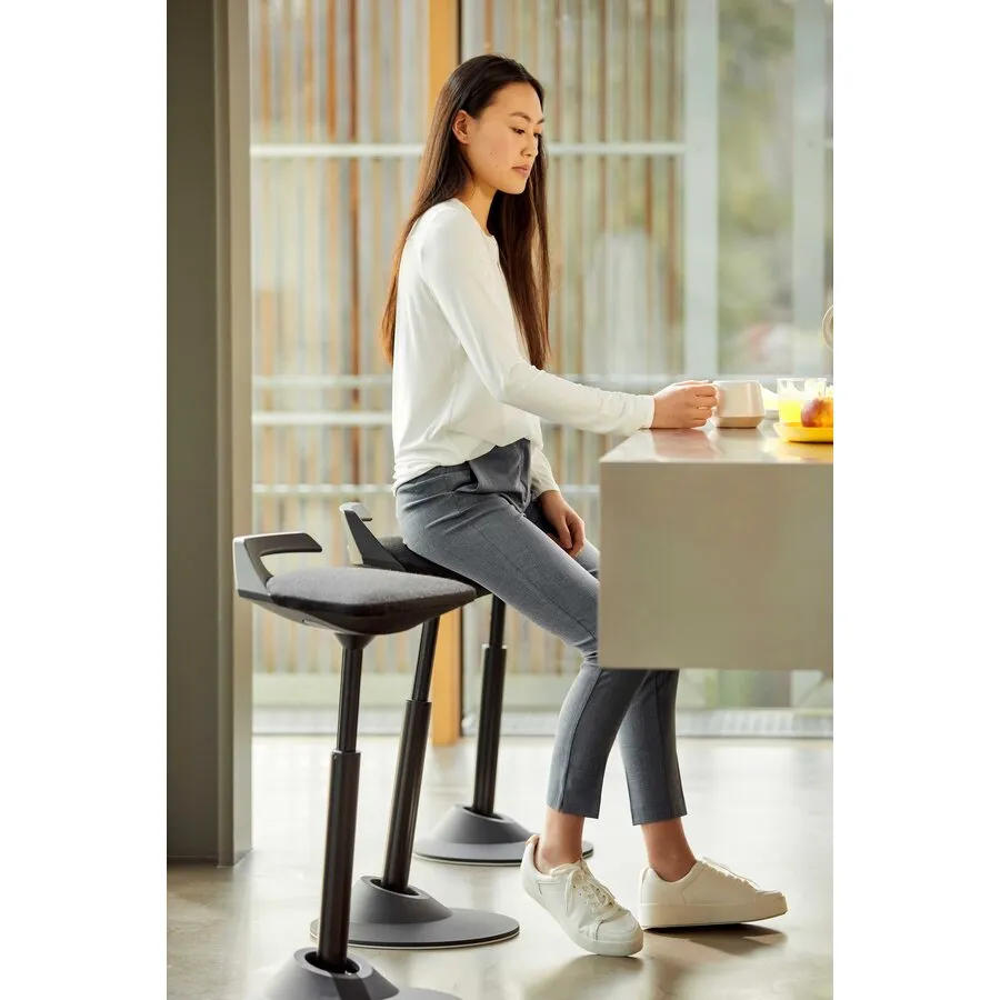 De Aeris Muvman biedt een oplossing voor zowel het vermoeiende effect van lang staan als het ongemak van langdurig zitten in dezelfde houding. De licht gebogen zitting met Flexzone-technologie voorkomt drukpunten en bevordert een goede houding, of je nu zit of staat. Dit leidt tot een optimale bloedcirculatie, zelfs tot in de tenen. Het stabiele onderstel van deze zit-sta stoel is uitgerust met antisliprubber, wat zorgt voor een stevige grip op de vloer en tegelijkertijd de vloer beschermt, zelfs bij intensief gebruik.