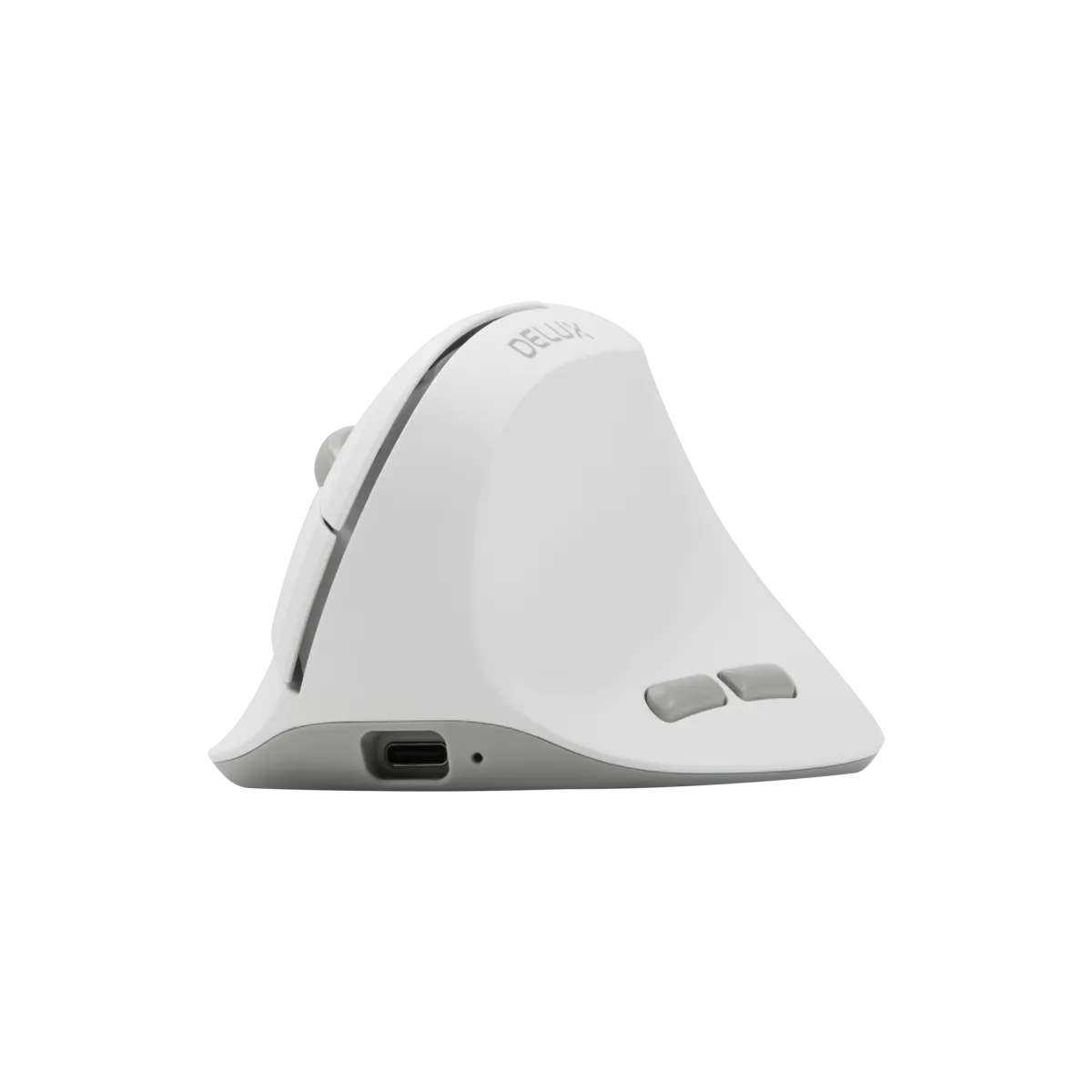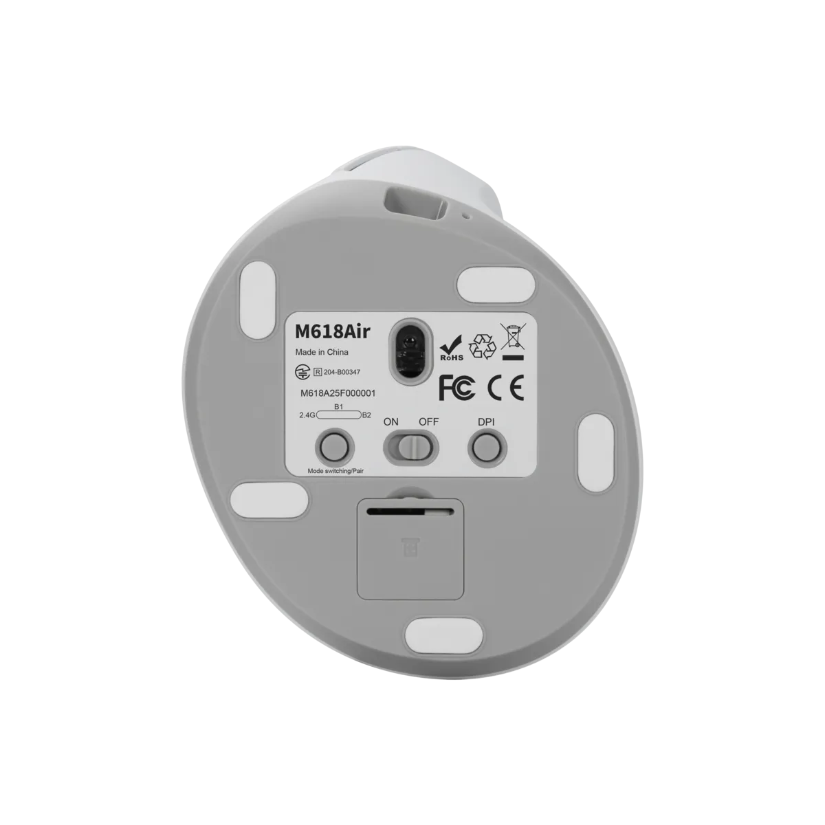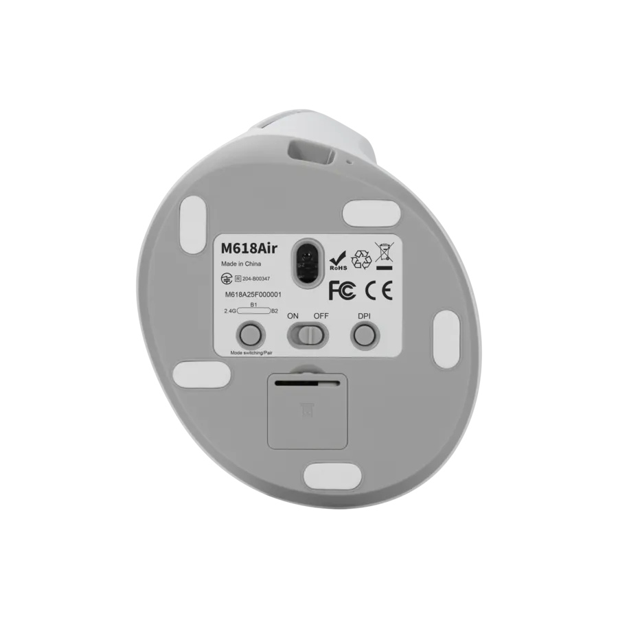 De Delux M618 Air is een rare combinatie, op een goede manier. Verticale muis, dus lekker vriendelijk voor je pols, maar ondertussen ook gebouwd voor tempo. 84 gram, stille knoppen bovenop, en via de USB-ontvanger polling tot 1000 Hz. Je hoort ‘m bijna niet, maar je merkt ‘m wel.