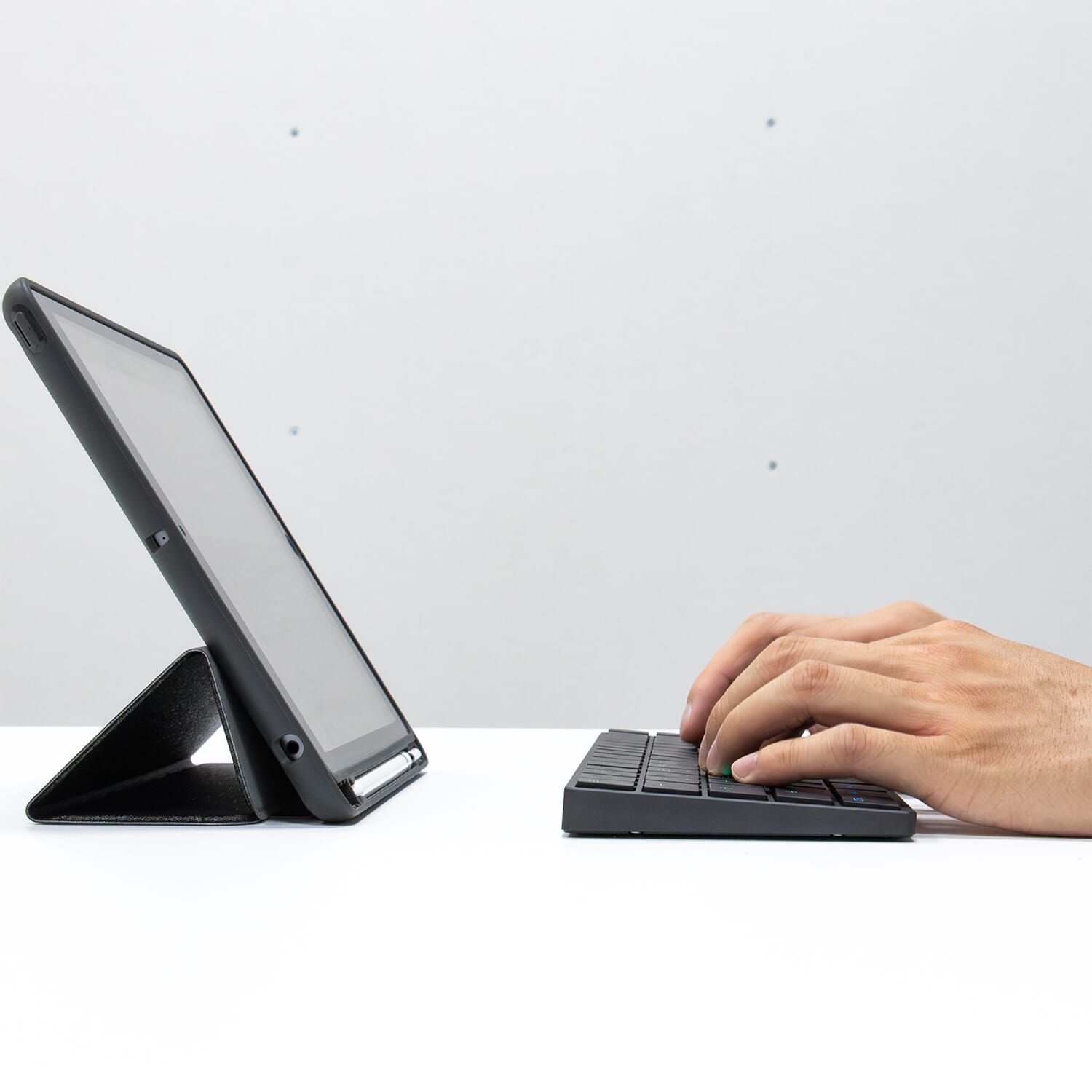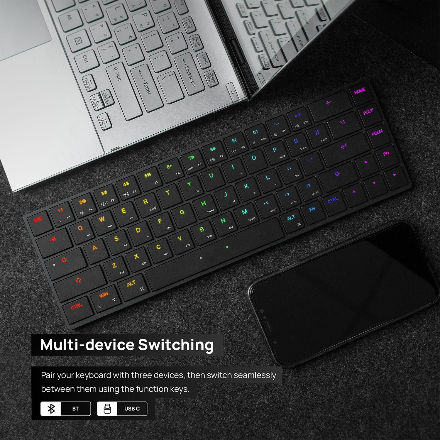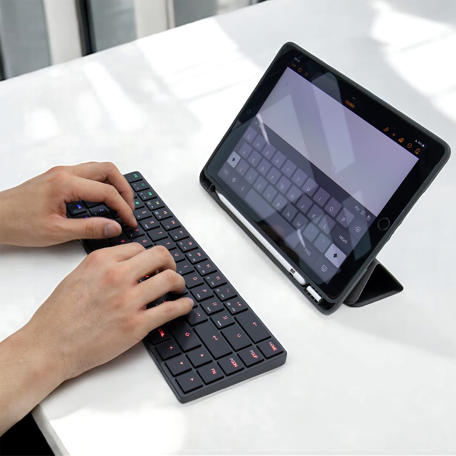 Deze switches zijn speciaal ontwikkeld voor ultradunne apparaten en hebben een activeringspunt van slechts 0,8 mm en een totale toetsaanslag van 1,8 mm. Dat betekent: minder kracht nodig, sneller reageren. Daardoor typt het niet alleen lichter, maar ook sneller dan veel traditionele mechanische toetsenborden.