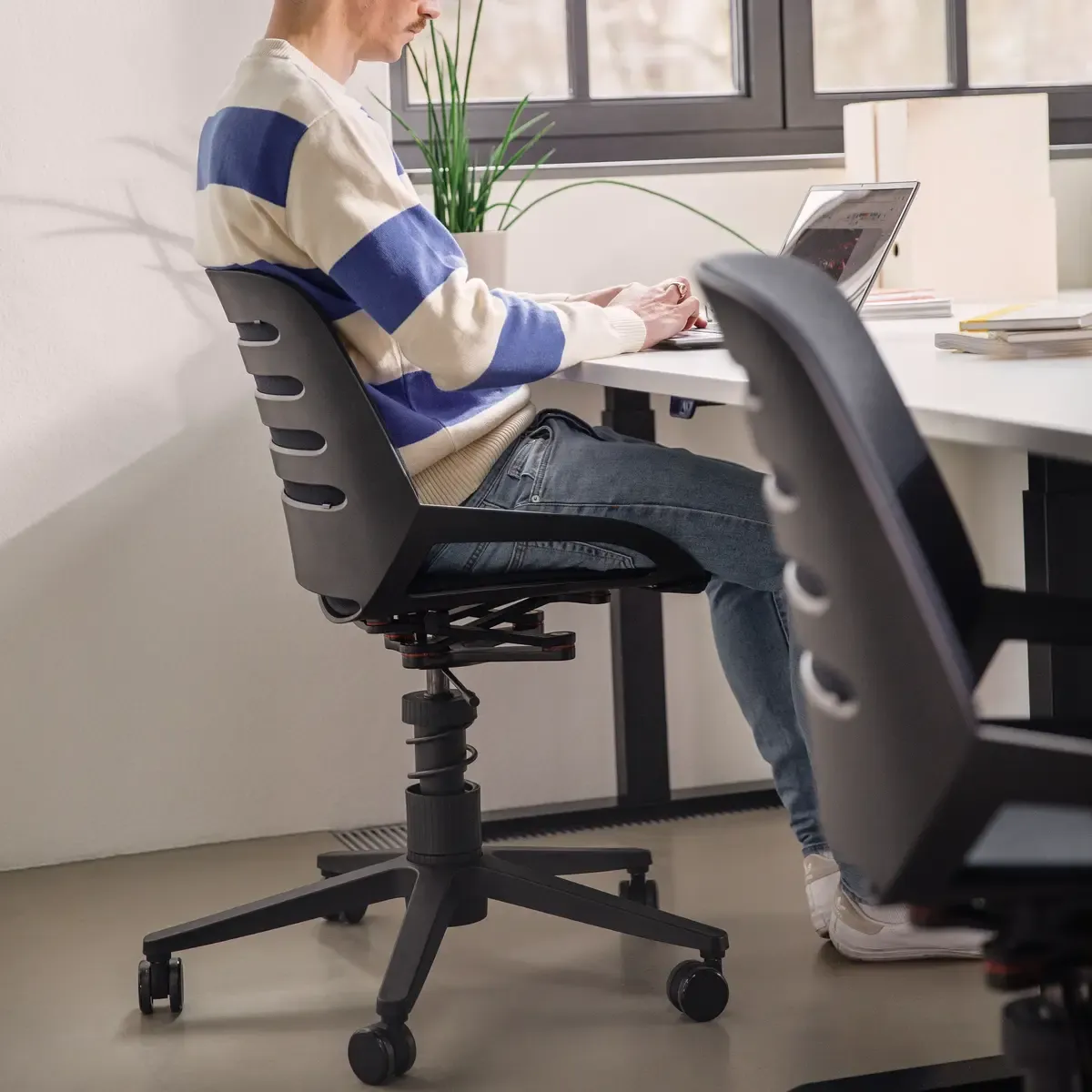 Door de SAM-technologie blijf je onbewust in beweging, wat de kans op rugklachten flink verlaagt. De flexibele voorkant van de zitting voorkomt afknelling bij de bovenbenen, wat weer helpt tegen slapende benen. En de optionele lendensteun houdt je onderrug op spanning, zonder dat je krampachtig hoeft te zitten.