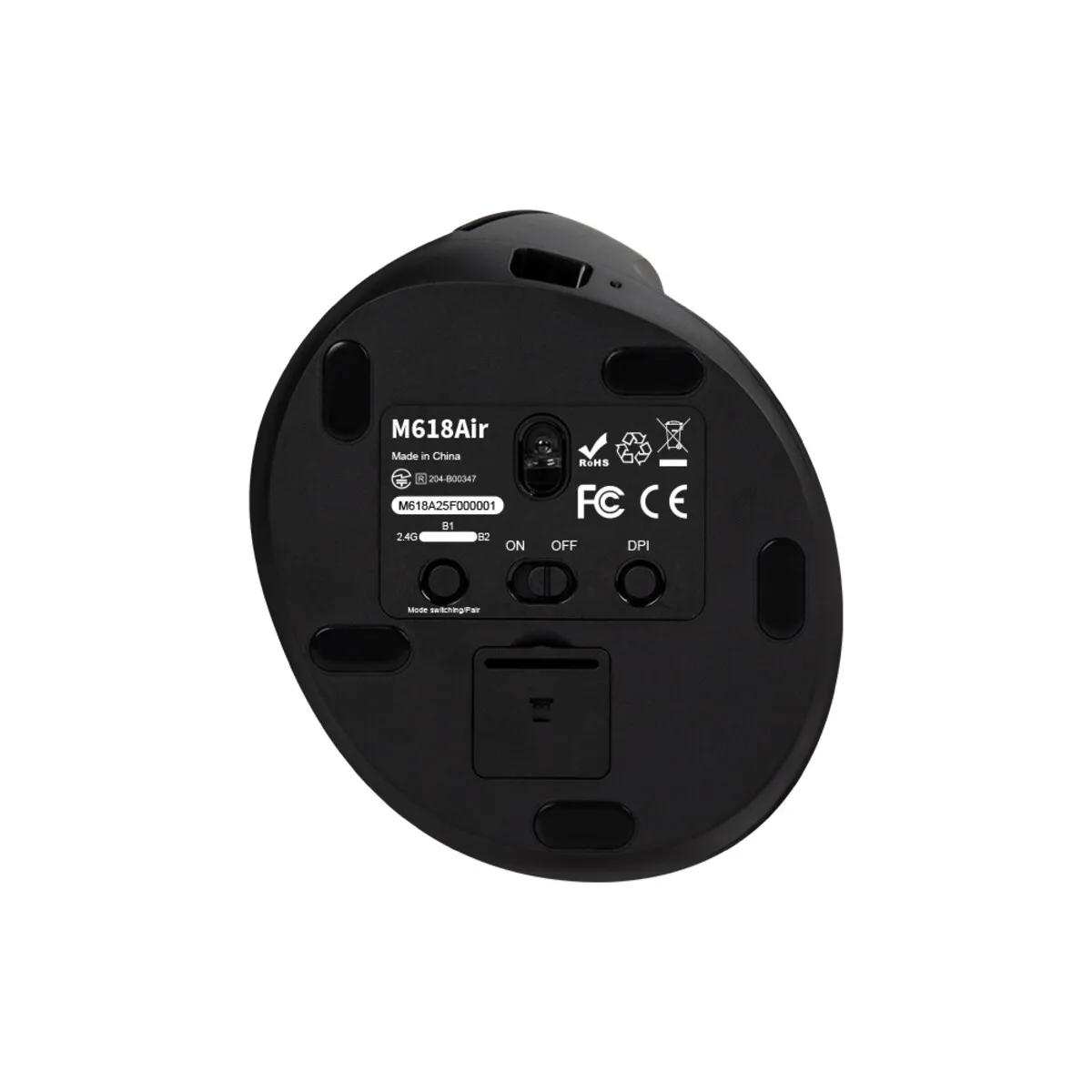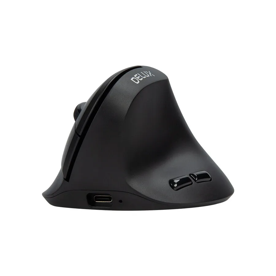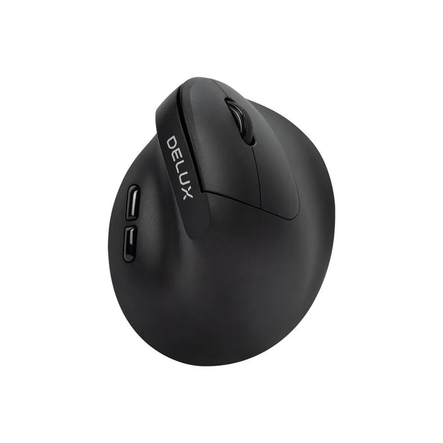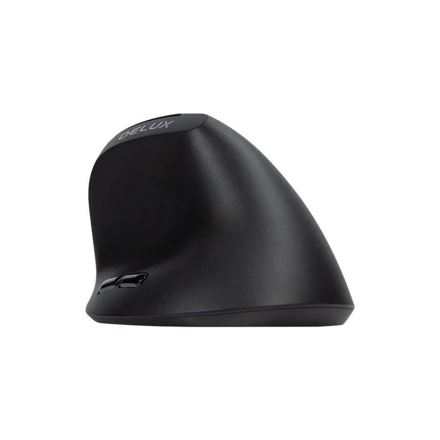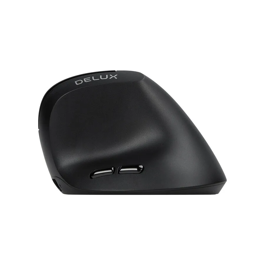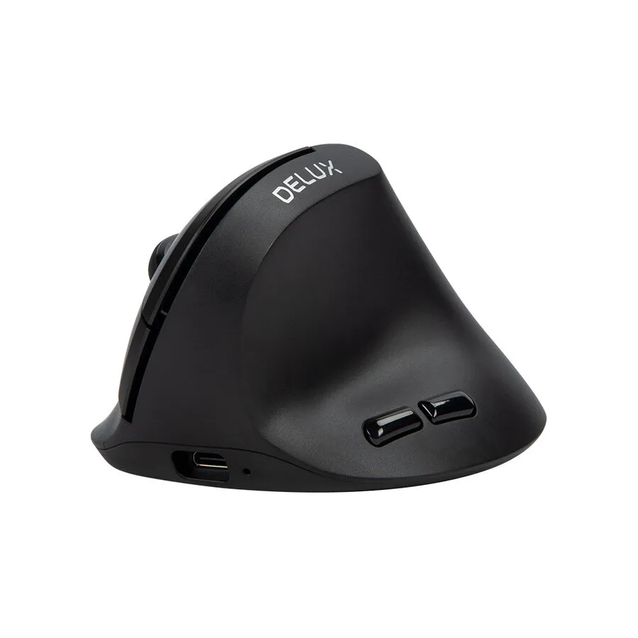 De Delux M618 Air is een rare combinatie, op een goede manier. Verticale muis, dus lekker vriendelijk voor je pols, maar ondertussen ook gebouwd voor tempo. 84 gram, stille knoppen bovenop, en via de USB-ontvanger polling tot 1000 Hz. Je hoort ‘m bijna niet, maar je merkt ‘m wel.