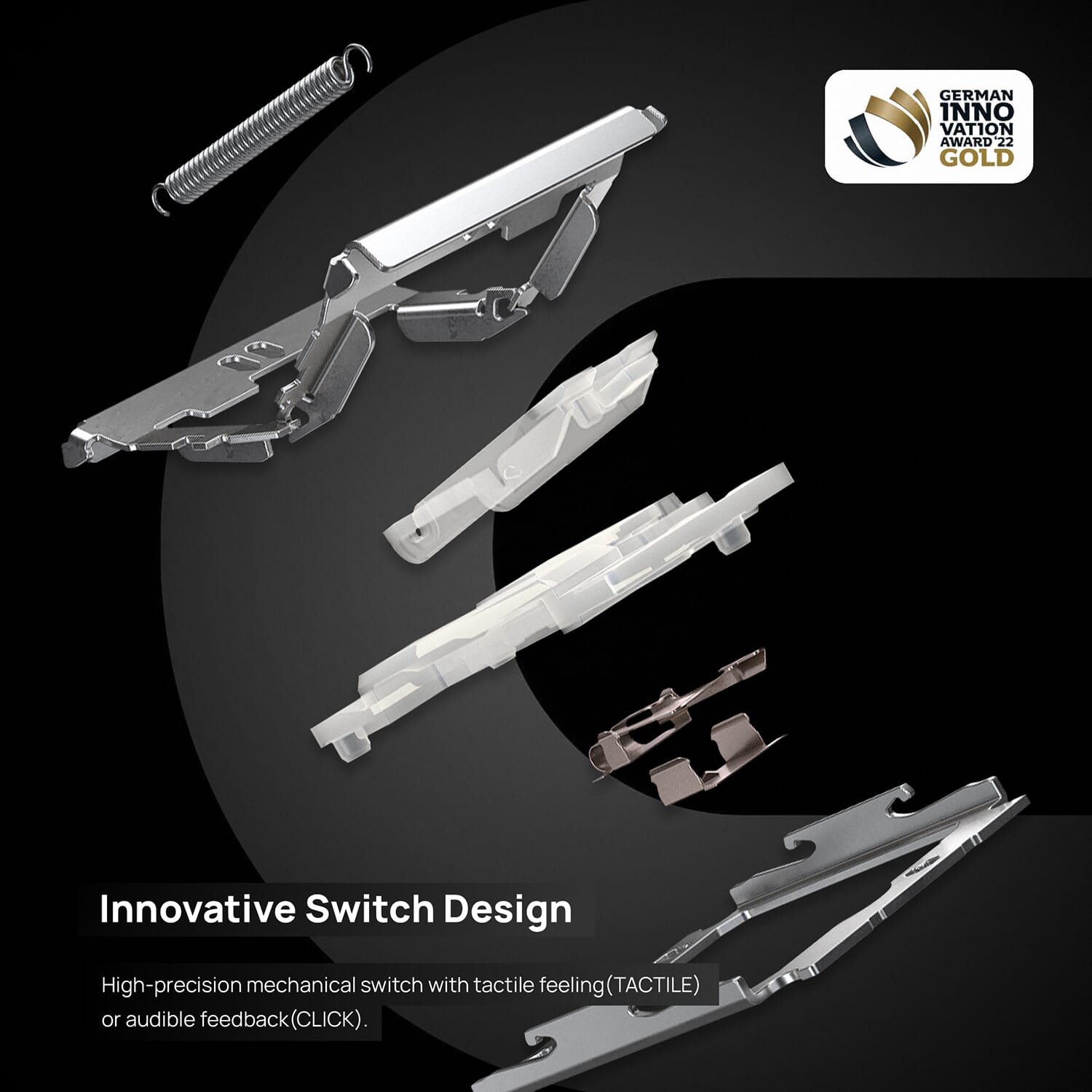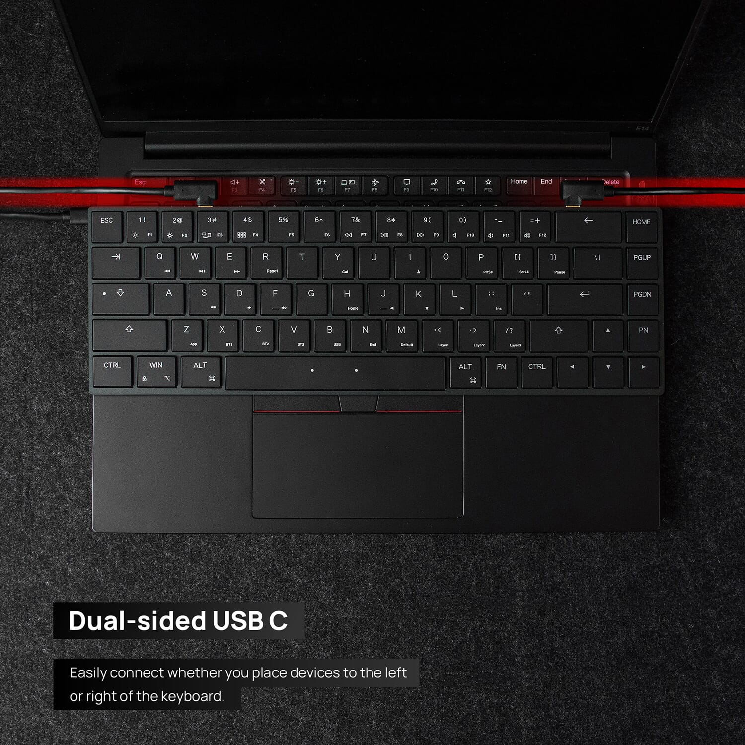 These switches are specially developed for ultra-thin devices and have an actuation point of just 0.8 mm and a total key travel of 1.8 mm. That means: less force required, faster response. As a result, it types not only lighter but also faster than many traditional mechanical keyboards.
