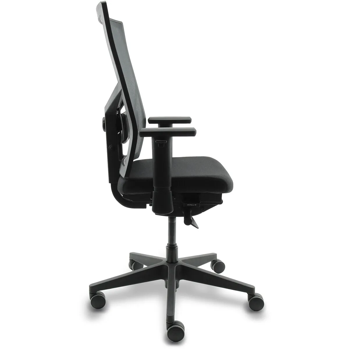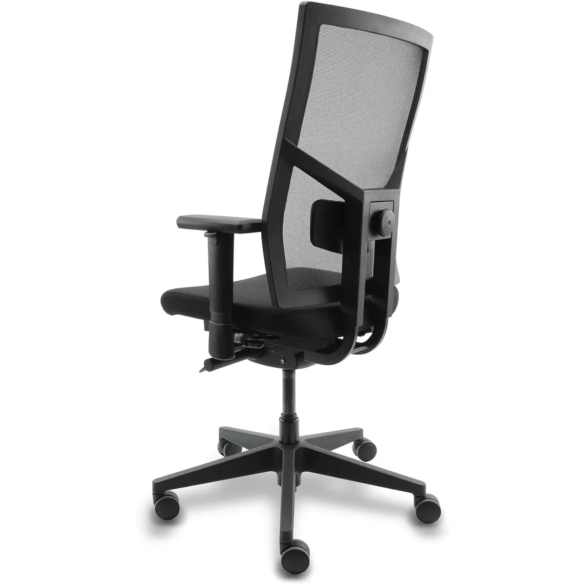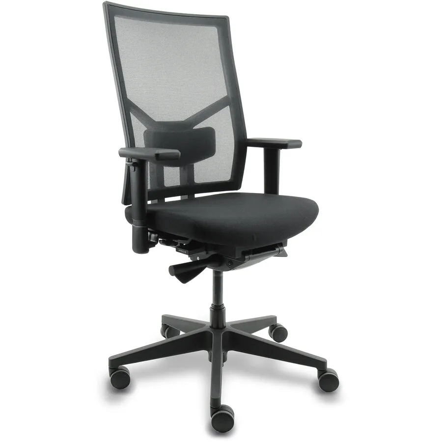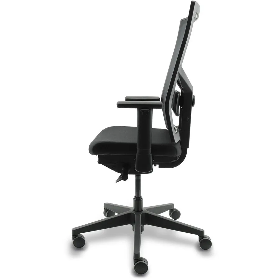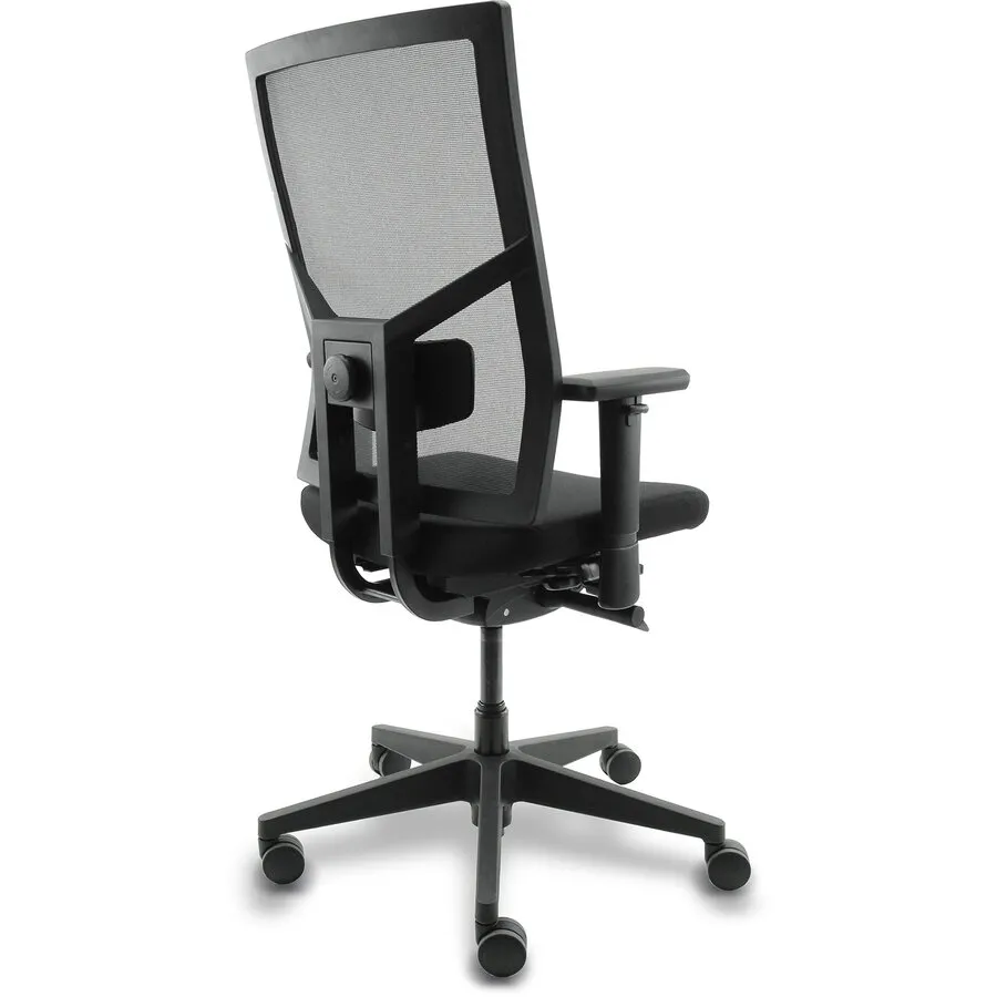Dit model is ontworpen voor organisaties die waarde hechten aan normering. De basis is dezelfde als de stof-variant, maar met één belangrijk verschil: de rugleuning is netbespannen (mesh) en in hoogte verstelbaar. Deze stoel is getest volgens NPR 1813:2025 en NEN-EN 1335 (type A).