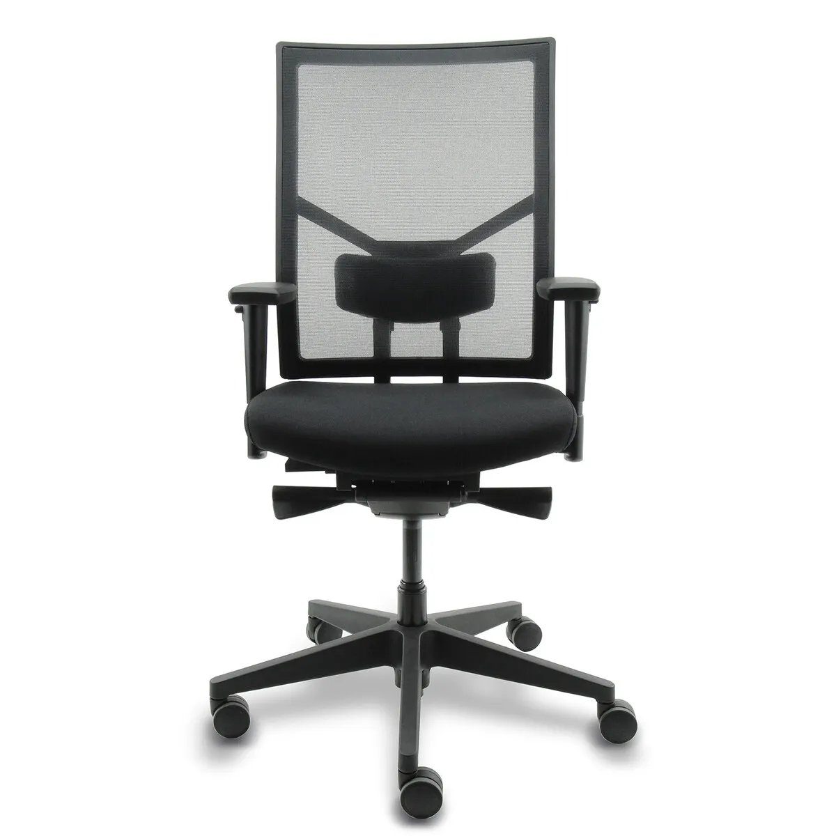 De lendensteun is in diepte verstelbaar. Bij de mesh rug-variant stel je deze achterop de rugleuning bij. Daarvoor moet je even opstaan. Het is een kleine handeling, maar wel handig om te weten.