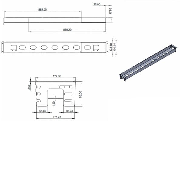 | Hoogte kabelgoot | 5,8-8-10 cm |