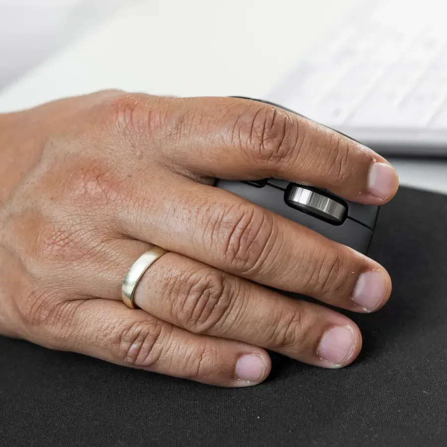 De combinatie van verticale positionering, comfortabele grip en slimme knoppenindeling zorgt ervoor dat je minder knijpt en minder spanning opbouwt. De duim- en scrollknoppen zijn logisch geplaatst, zodat je niet hoeft te zoeken of te forceren. Dit is een muis die je werkdag lichter maakt, zonder dat je daar actief over hoeft na te denken.