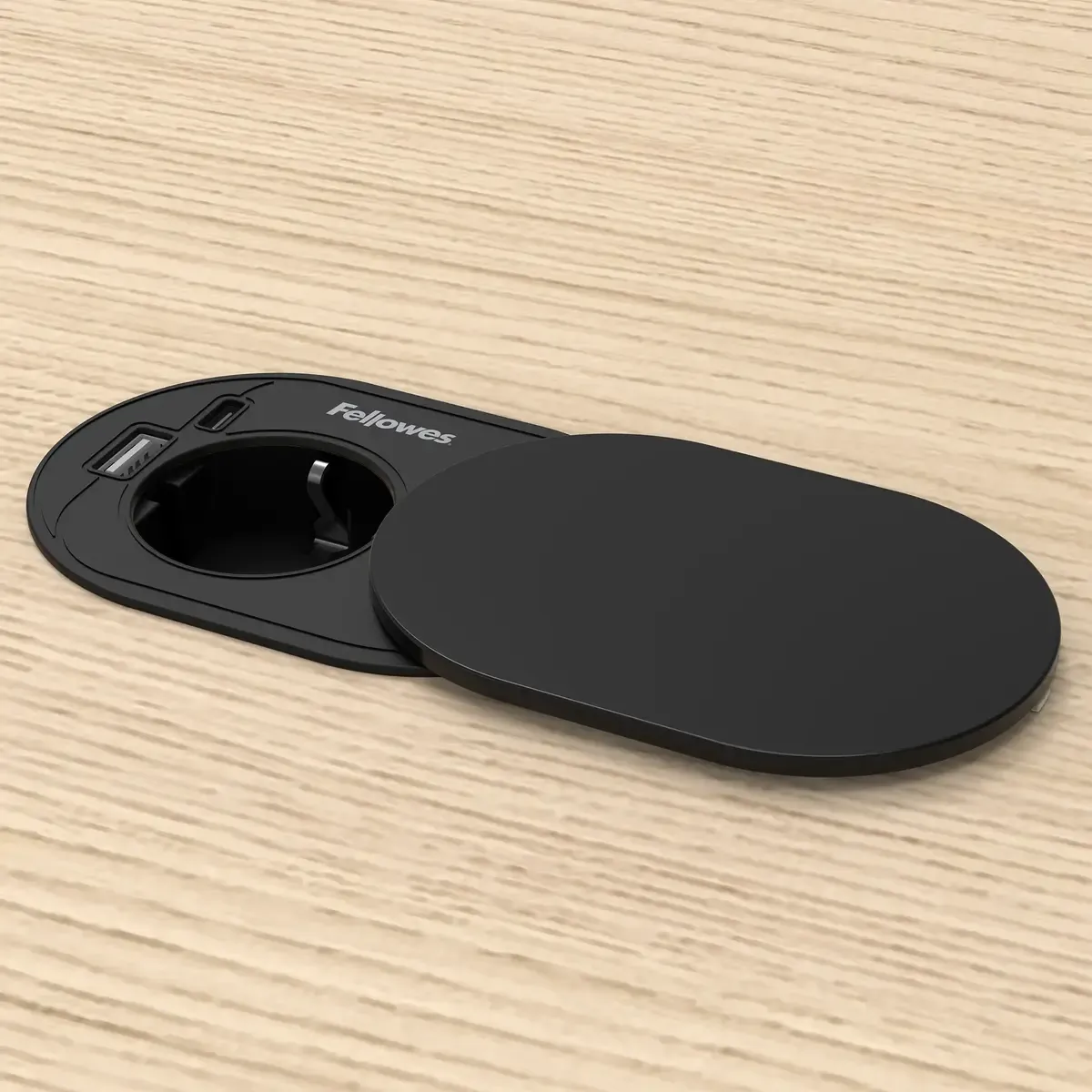 Beschrijving Fellowes Power-Spot® Slide zwart - 1x 230V & USB A+C charger