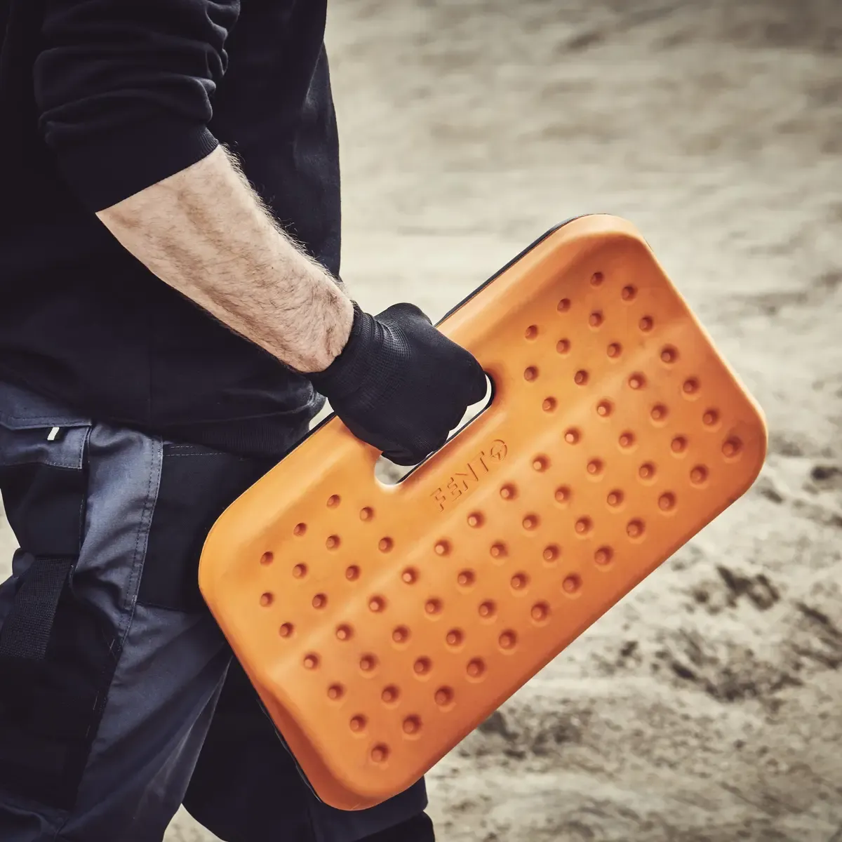 De Board is ontworpen als stabiel kniebord voor professioneel gebruik. Hij biedt een vlak, stevig werkoppervlak en is geschikt voor uiteenlopende ondergronden, van betonvloeren tot straatwerk. Door het slimme ontwerp blijft hij goed liggen en geeft hij vertrouwen bij elke beweging.
