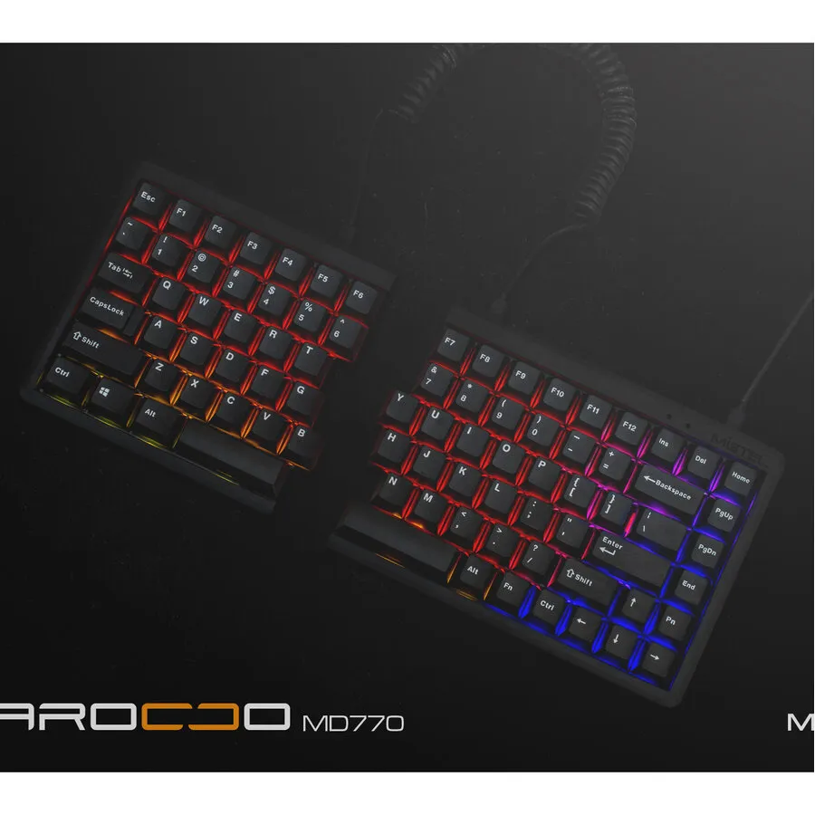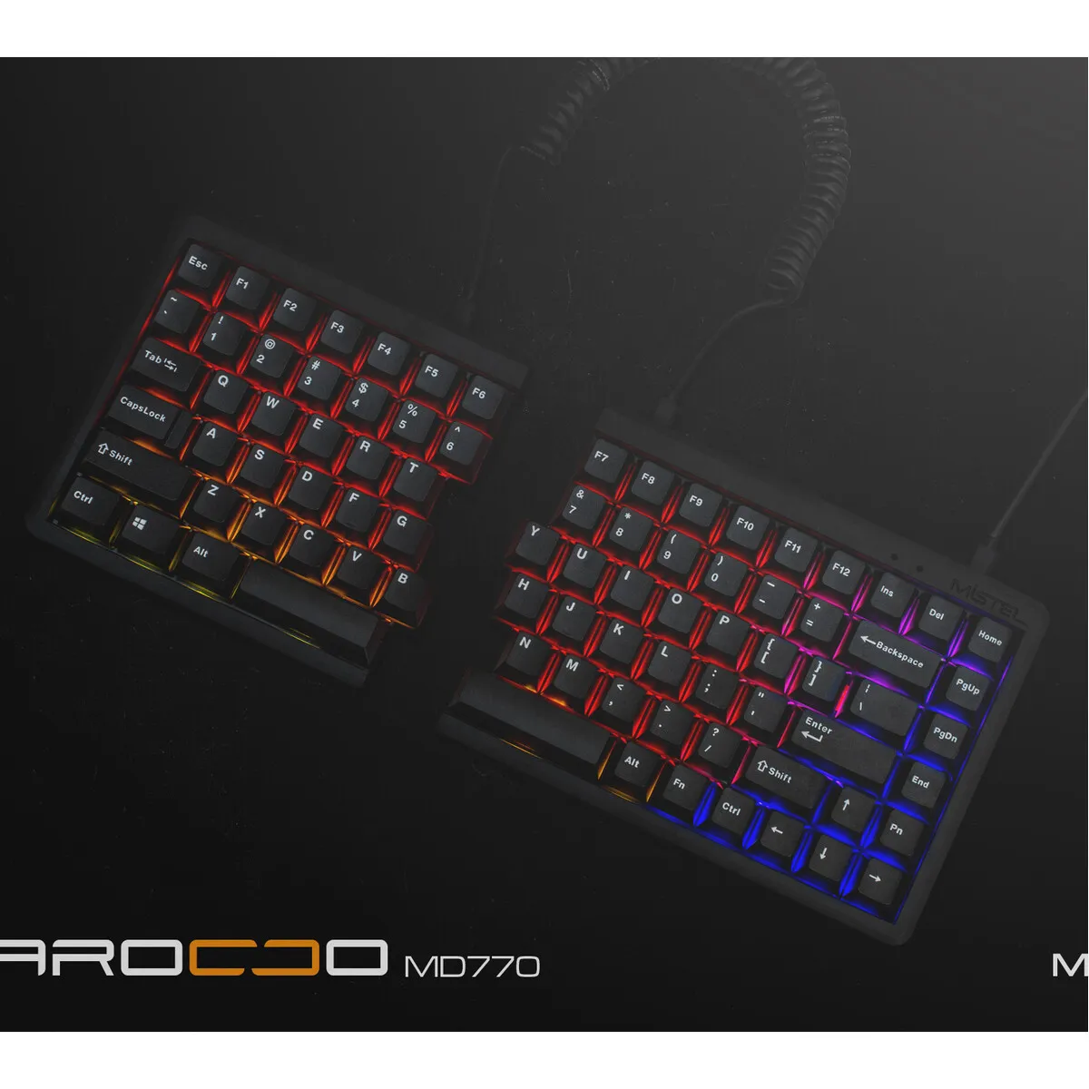 Deze 75% layout van Mistel was er eentje waar lang op gewacht werd. Na het populaire 60%-model (MD600) was de behoefte aan pijltjestoetsen groot. Met een breedte van 334,5 mm blijft de MD770 compact, maar wel een stuk geschikter voor kantoorwerk.