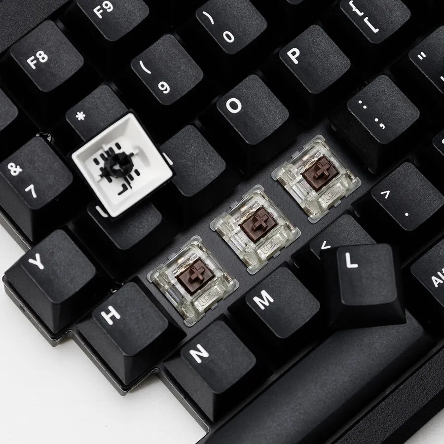 Met dip-switch 1 zet je de layout om naar Mac. Wel jammer: er worden geen Mac-keycaps meegeleverd.