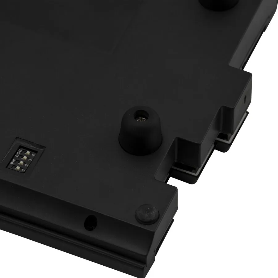Onderop zitten vier dip-switches waarmee je het toetsenbord kunt aanpassen:
