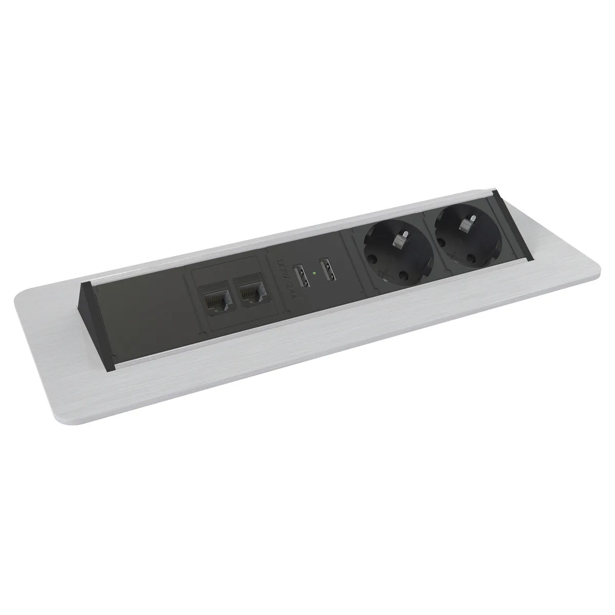 Axessline QuickBox Plus inbouw stekkerdoos met 2x stroom 2x USB charger en 2x Data zilvergrijs