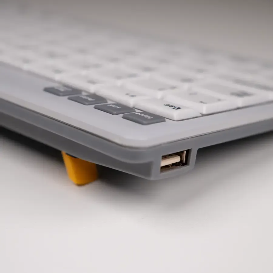 Ondanks zijn compacte formaat zit het UltraBoard 950 V2 vol handige functies. Je typt op een schaarmechanisme met 19 mm toetsafstand, holle toetsen en een duidelijk kleurcontrast tussen letters en toetsen. Dat leest prettig en typt nauwkeurig. Ook krijg je sneltoetsen, multimediatoetsen en status-LED’s voor een workflow zonder gedoe.