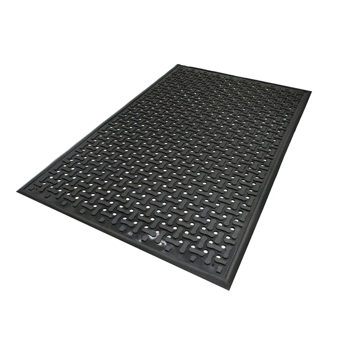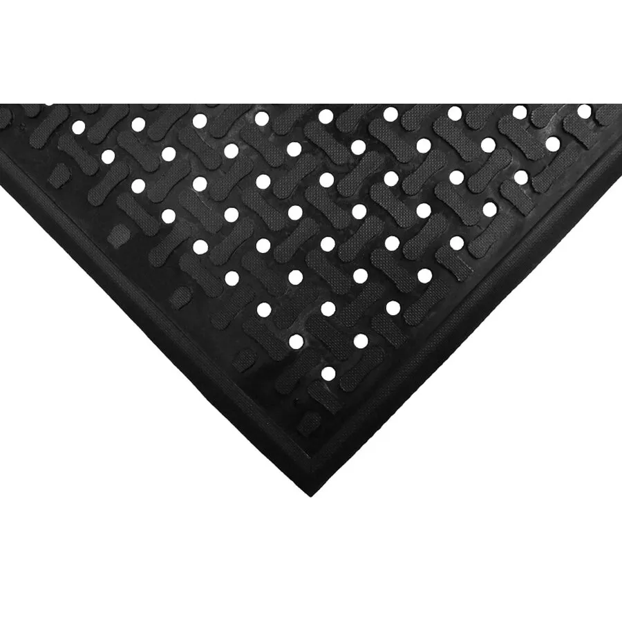 Wat deze mat bijzonder maakt, is de open structuur. Water, vuil en vet kunnen door de openingen wegstromen. Daardoor blijft het oppervlak bovenop beter bruikbaar, ook in ruimtes waar regelmatig wordt gespoeld of gewerkt met vloeistoffen.