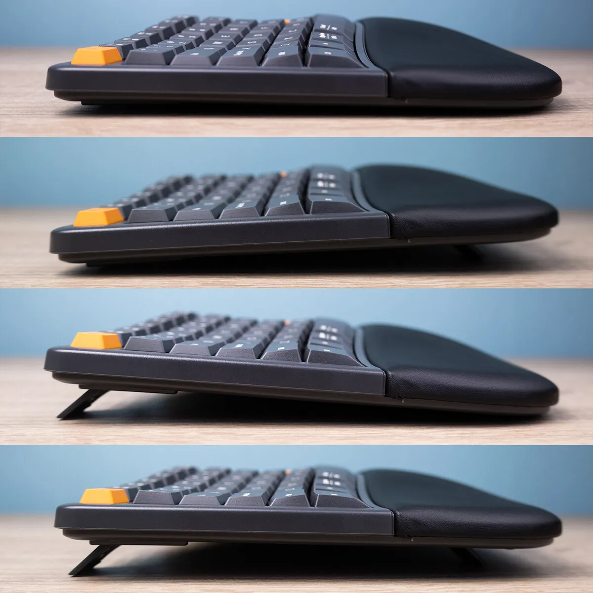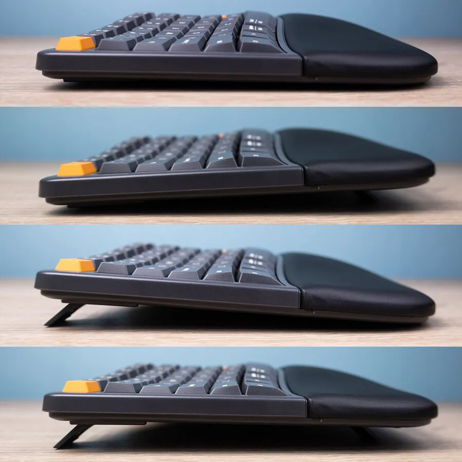 Dat is nog inet alles gelukkig, want de Split heeft meer te bieden. Hij is uitgevoerd met een prettig aanvoelende geïntegreerde pols-/handpalmsteun. De steun is op zo'n manier ontworpen dat hij mooi met de curve van het bord meeloopt. Houd er wel rekening mee dat de polssteun niet verwijderbaar is. De afmetingen die wij communiceren zijn inclusief de polssteun.