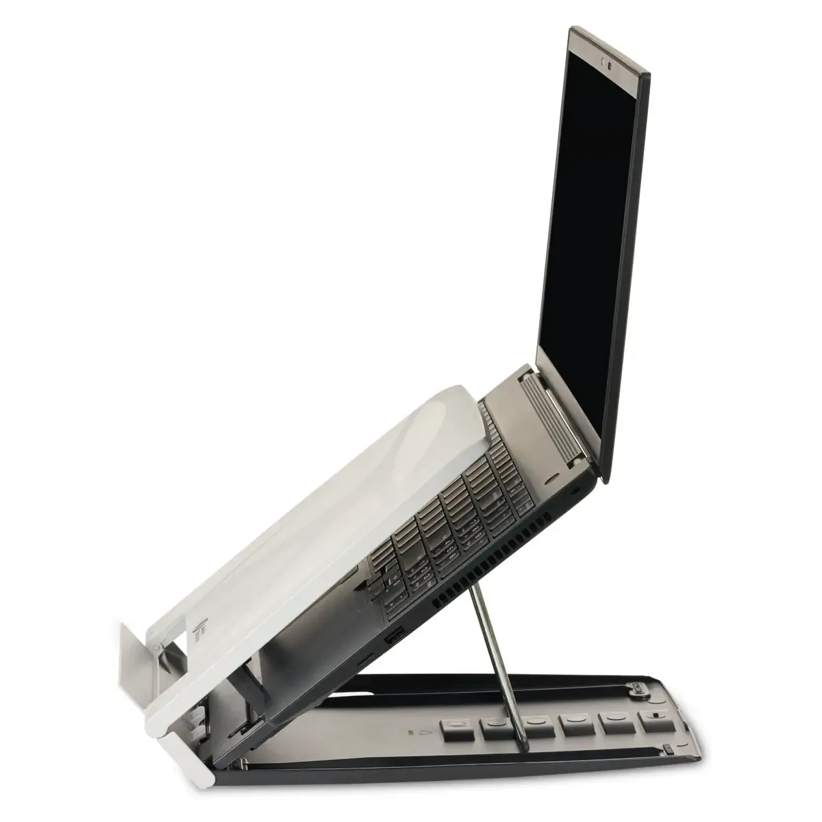 Deze laptopstandaard brengt je scherm naar een betere kijkhoogte en kijkhoek. Het verstelbereik heeft 6 standen en loopt van 115 mm tot 190 mm. Minder voorover, minder “nek naar voren”, meer ontspannen werken.