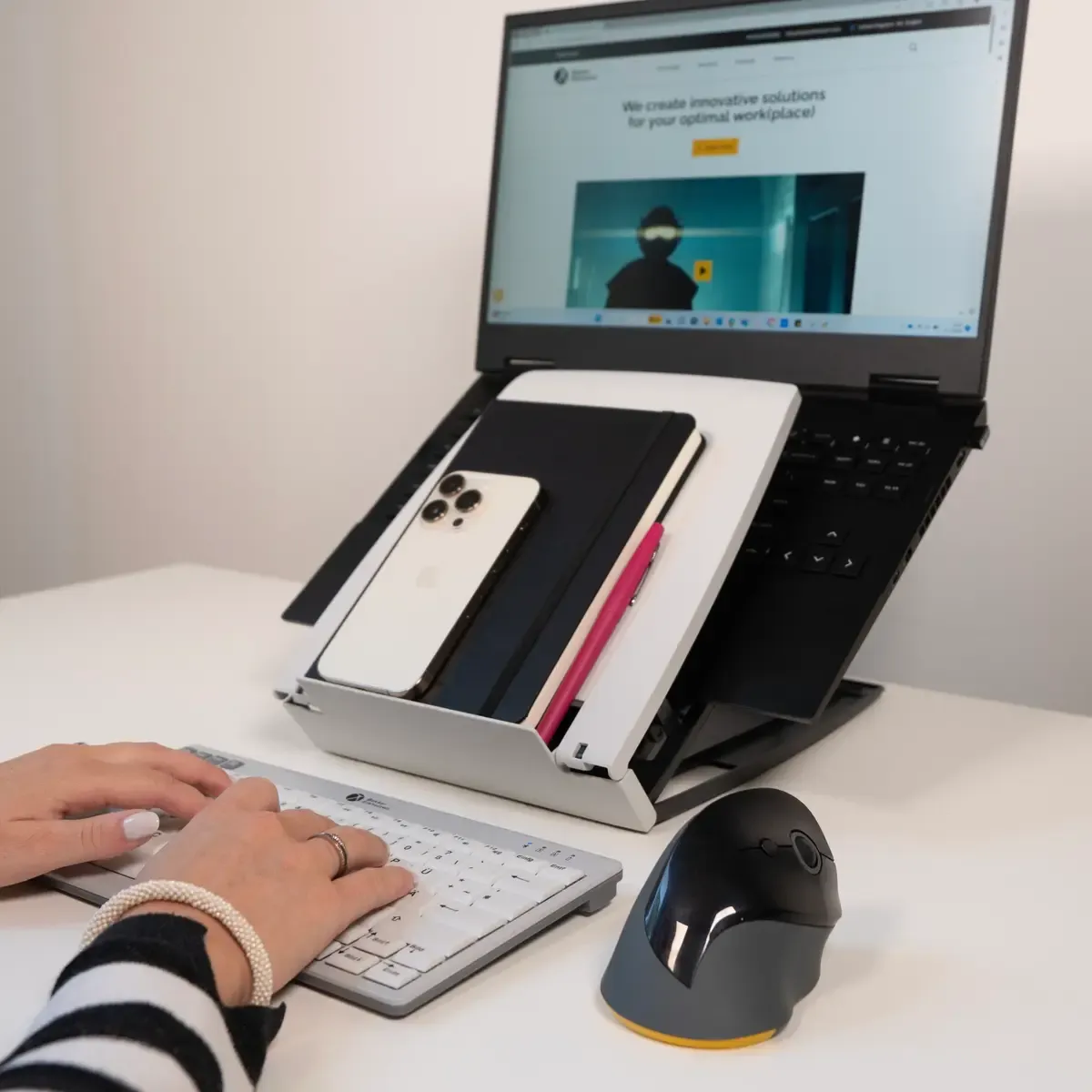 Je krijgt een stabiele basis met antislipvoetjes, een licht hellend oppervlak en een geïntegreerde documenthouder. Dit is typisch zo’n product dat je elke werkdag gebruikt, en dat pas opvalt als je het niet hebt.
