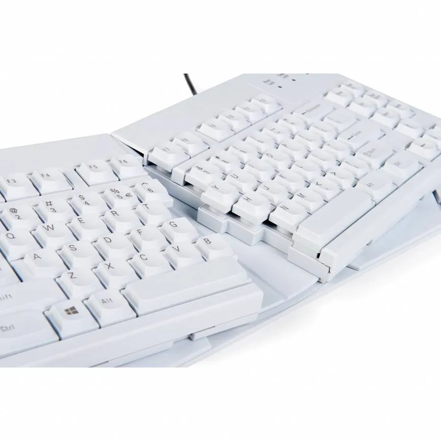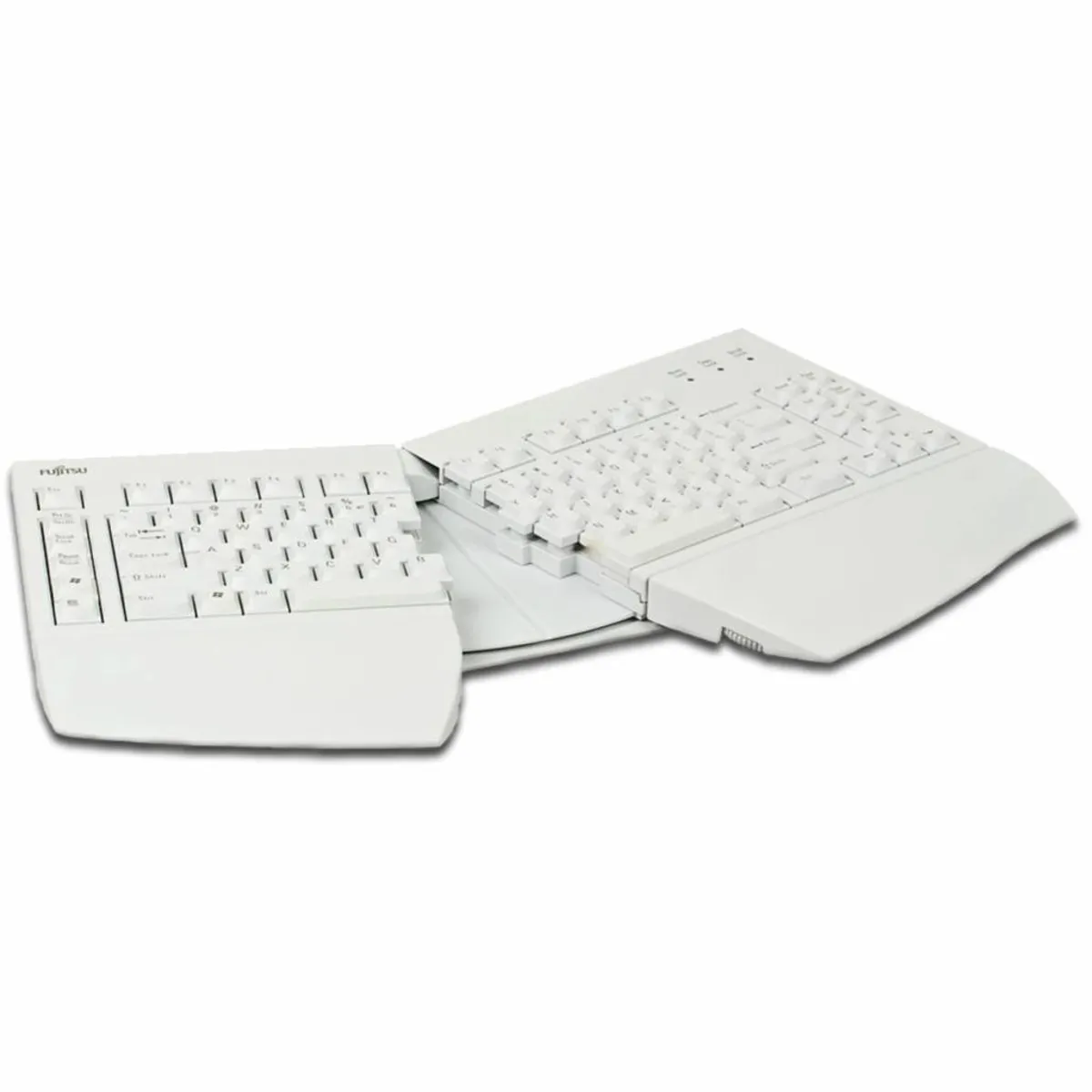 Dit ergonomisch toetsenbord van Fujitsu biedt je handen een optimale houding aan door het unieke, gekantelde en gesplitste design. De hoogte van het toetsenbord en de splitsing van de twee delen kan je zelf instellen. Aan dit bijzondere toetsenbord moet je misschien wennen, maar de ondersteuning en rust die het biedt voor je houding is dat meer dan waard.