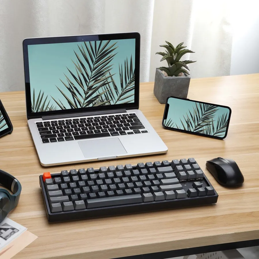 De connectiviteit van de K8 is fantastisch. Via Bluetooth kun je tot drie apparaten tegelijk draadloos aan het toetsenbord verbinden. Met behulp van de wisselknop schakel je vliegensvlug tussen je verbonden apparaten. Zo zit je het ene moment werk te verrichten op je laptop en typ je het volgende moment even vlug een Whatsappje over het avondeten, bijvoorbeeld. Een vierde apparaat kan met een kabel (USB) worden verbonden. Een enkel apparaat verbinden en daar de USB-kabel voor gebruiken kan natuurlijk ook.