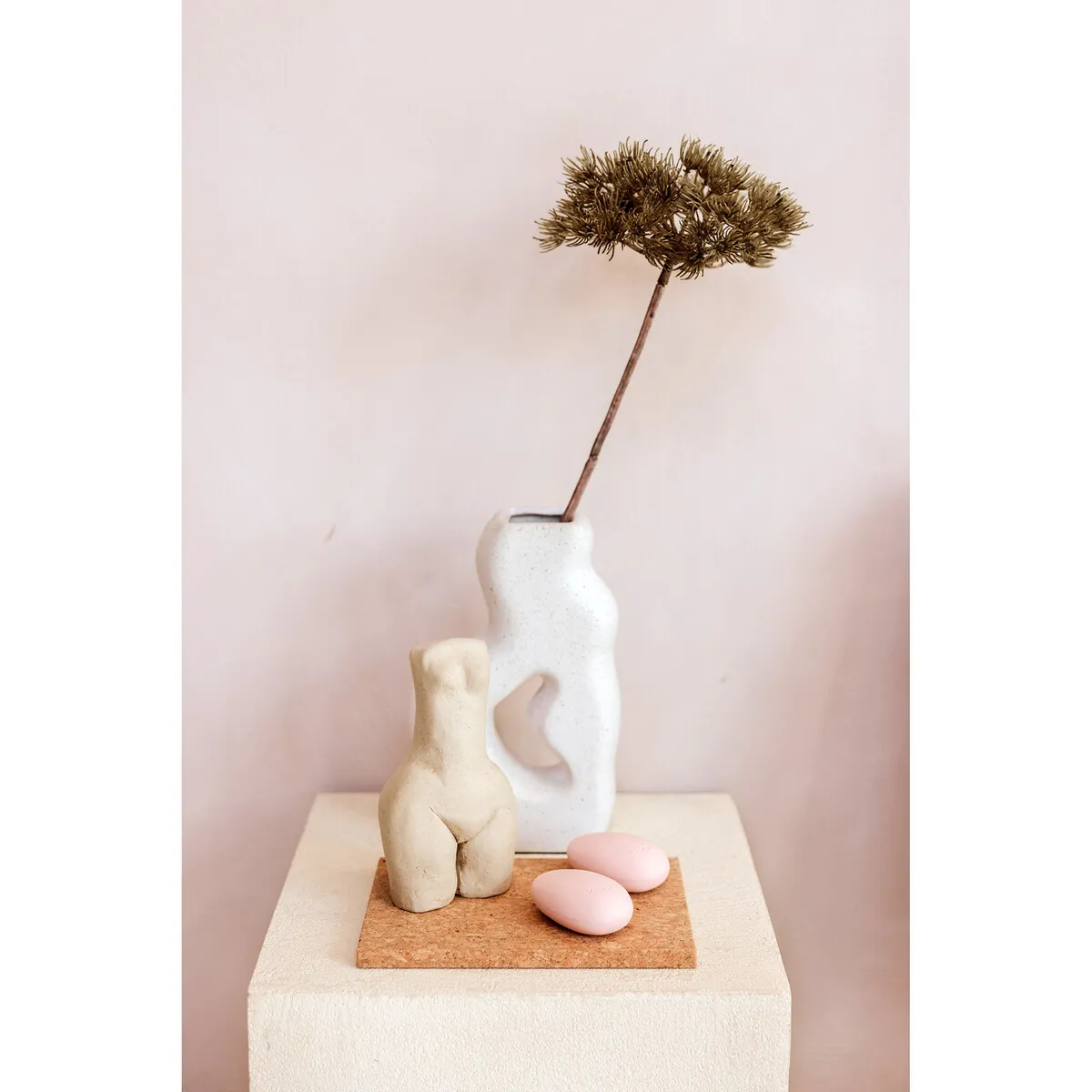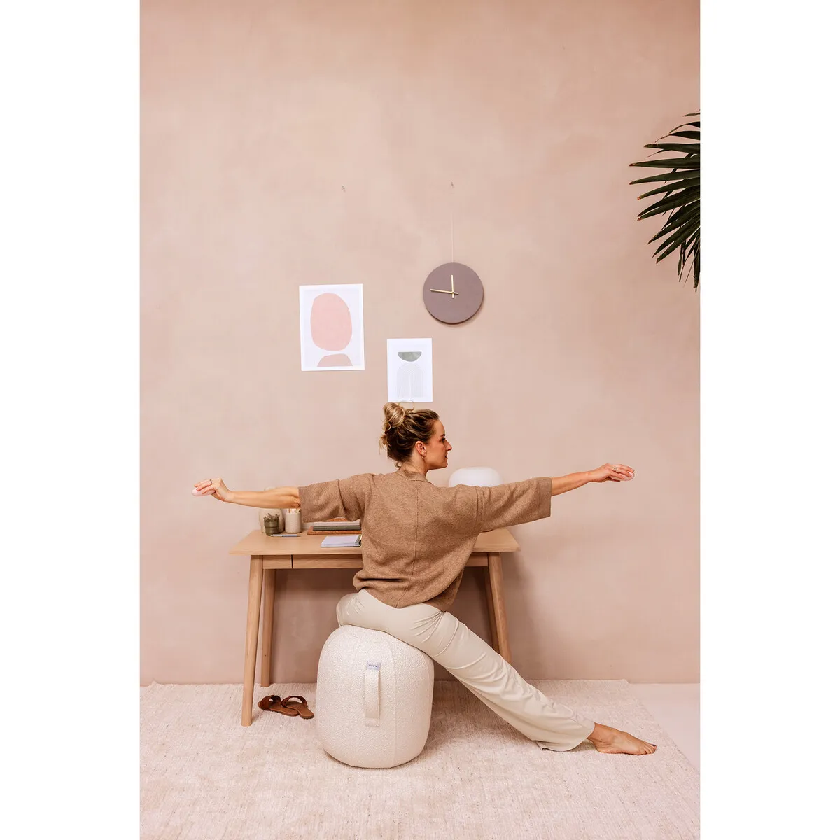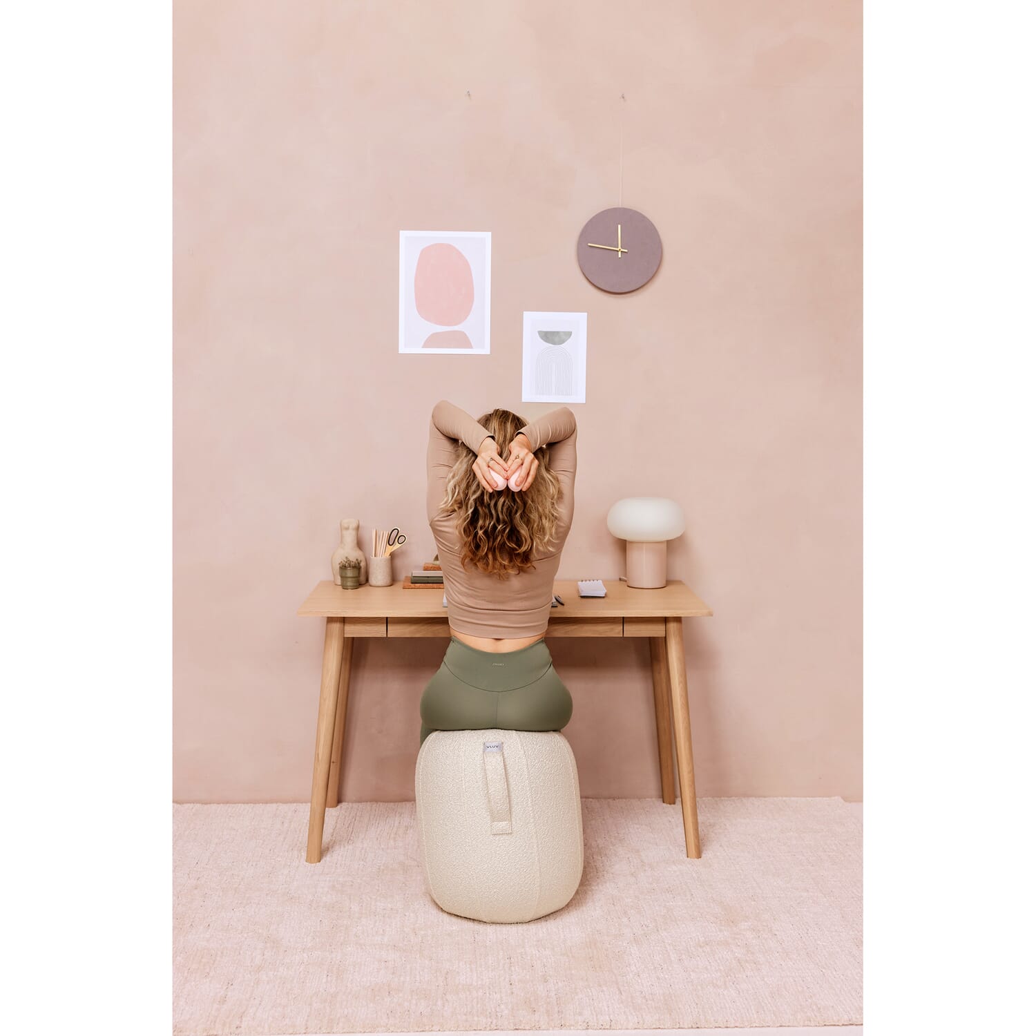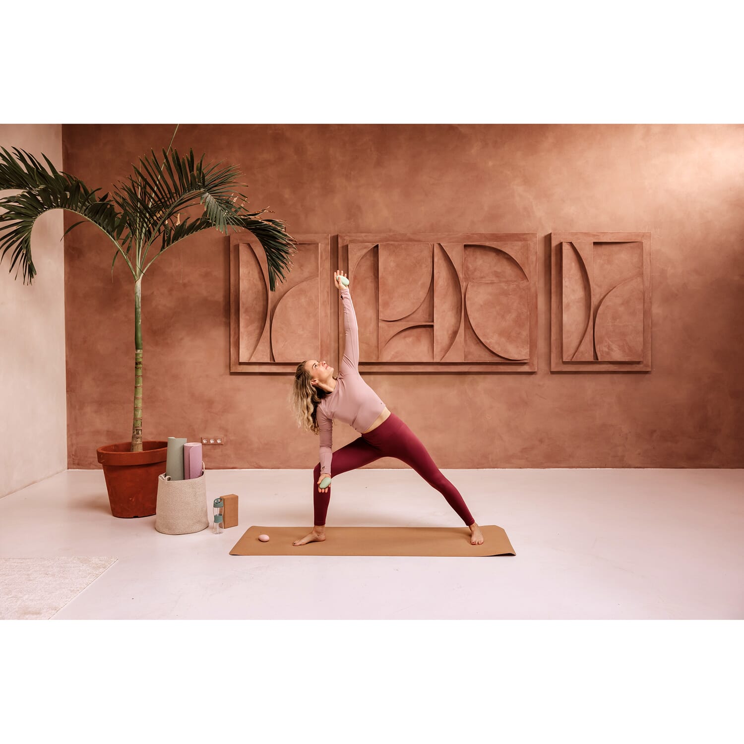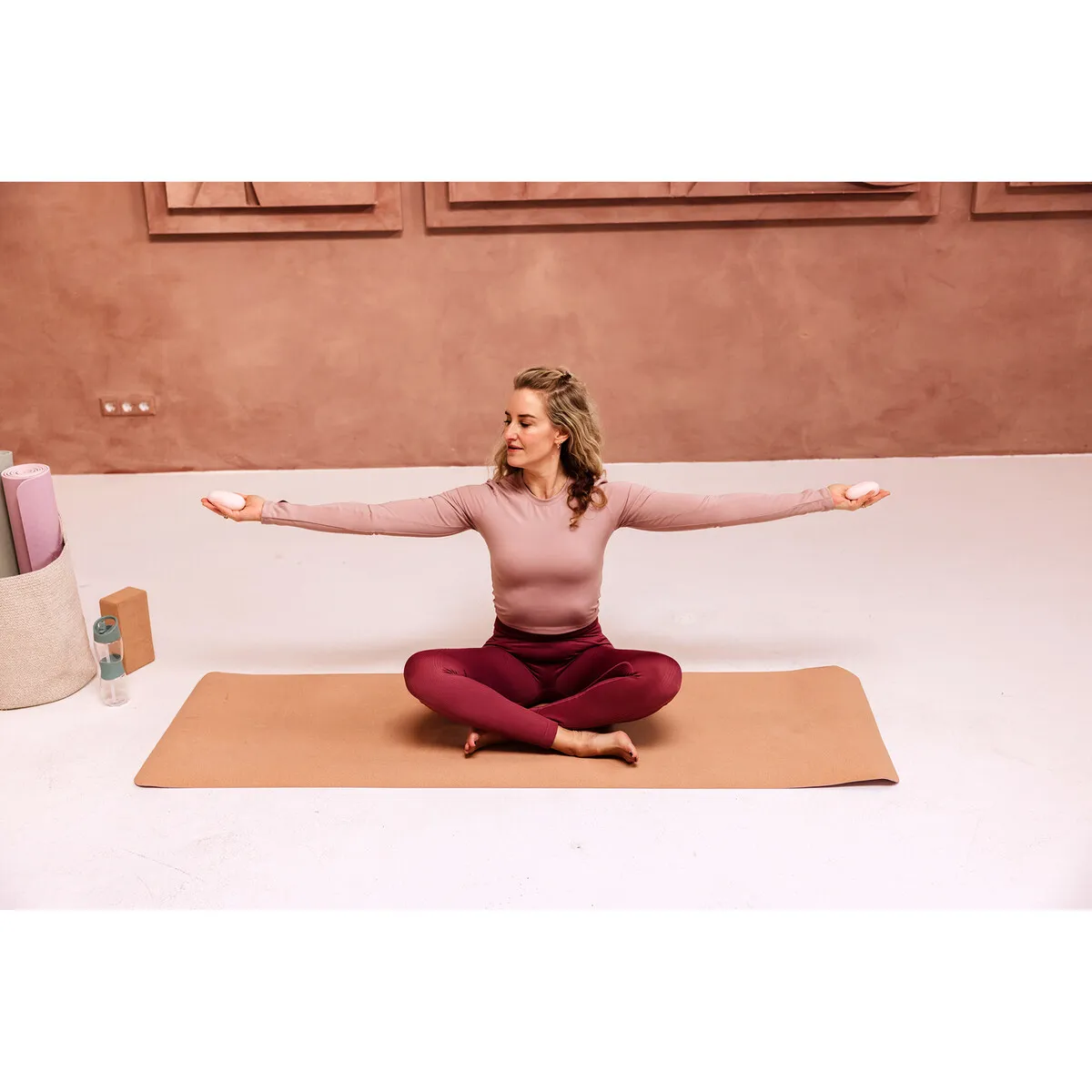 De organische vorm is afgeleid van een kiezelsteen. Daardoor sluit het gewicht mooi aan in je handpalm en voelt het natuurlijker aan dan een klassieke dumbbell met harde hoeken.