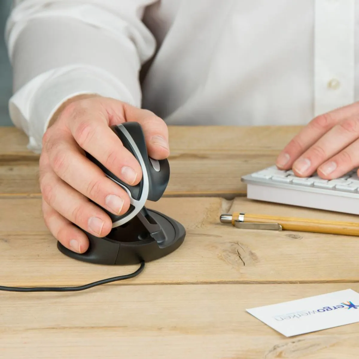 De Oyster is speciaal ontwikkeld om RSI gerelateerde klachten tegen te gaan. Met 5 verschillende hoeken kan iedereen een ideale werkhouding vinden. Het verticale ontwerp van de muis dwingt je in een meer natuurlijke houding en verkleint de kans op klachten in hand, pols en arm.
