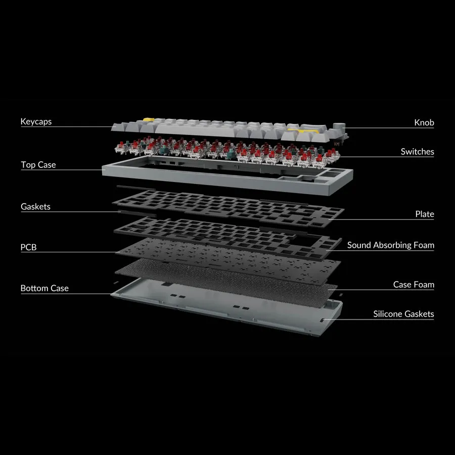 Oftewel aanpasbaar. Als je wil kun je de Q2 helemaal eigen maken, zowel de binnen- als buitenkant. Nieuwe switches, pakkingen, geluid absorberend foam, keycaps, het is allemaal vervangbaar.
