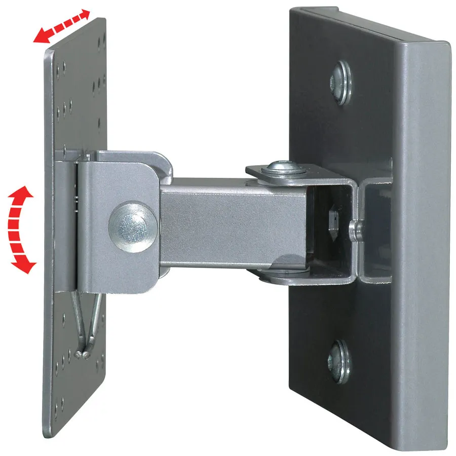 Het scherm bevestig je aan de mini arm. Hiermee kun je het scherm 45° naar boven en 45° naar beneden kantelen, en 45° naar zowel links als rechts draaien. De beugel heeft een maximale draagkracht van 10 kg en is geschikt voor schermen tot 27 inch.