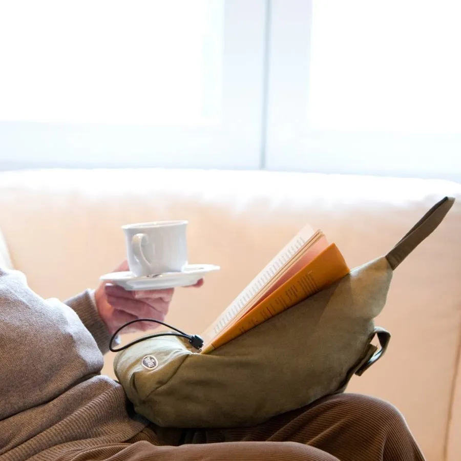 Doordat de BookSeat een soort zitzak is heeft hij geen vlakke ondergrond nodig om op te staan. Je kunt hem dus makkelijk in bed gebruiken of op schoot zetten. Zo kun je overal zonder problemen urenlang leesplezier beleven!