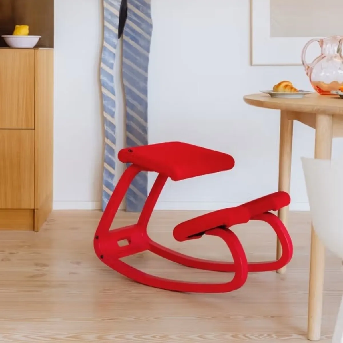 De Varier Variable Monochrome Kniestoel helpt je niet door je vast te zetten in één correcte houding, maar juist door beweging mogelijk te maken. De gekantelde zitting ondersteunt een opener zithoek, de schenensteun geeft houvast en de runners nodigen uit tot subtiele beweging. Daardoor kan je wervelkolom makkelijker een natuurlijke curve aannemen, vergelijkbaar met hoe die staat als je rechtop staat.