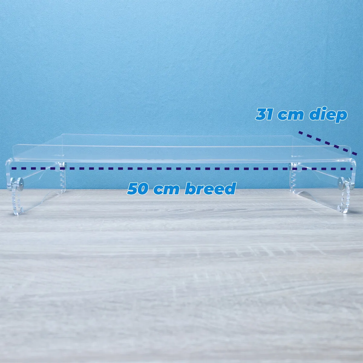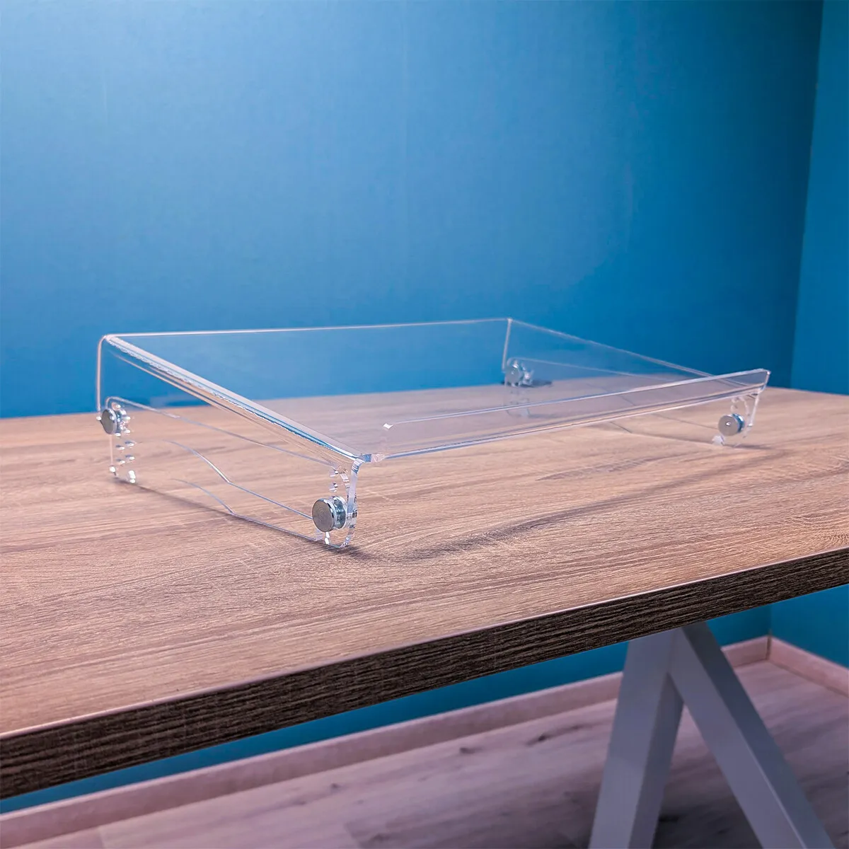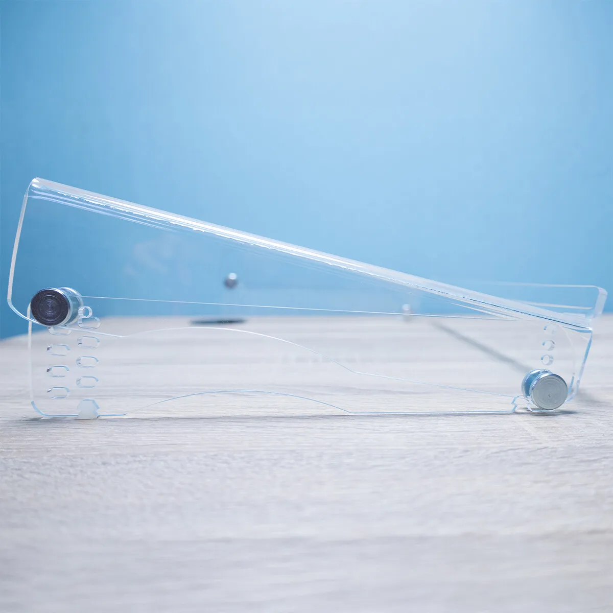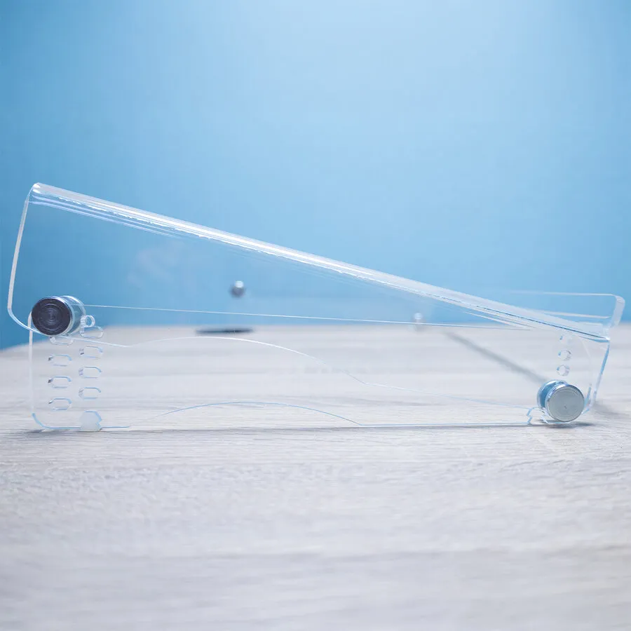 De READ_UP45 A3 is gemaakt van 0,5 cm dik acryl. Dat voelt meteen stevig aan en blijft tijdens het gebruik mooi stabiel. Het plateau is breed genoeg voor A3-documenten, ringmappen of tabbladen. Alles ligt vlak en overzichtelijk voor je.