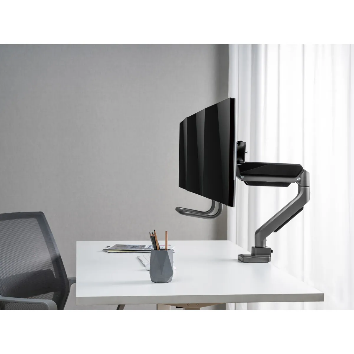 Iedere monitor gaat soepel omhoog, omlaag, kantelbaar, zwenkbaar of zelfs roterend. Zo stel je de hoek en hoogte in die bij jouw houding past. En met ingebouwde kabelclips blijft je bureau netjes en overzichtelijk.